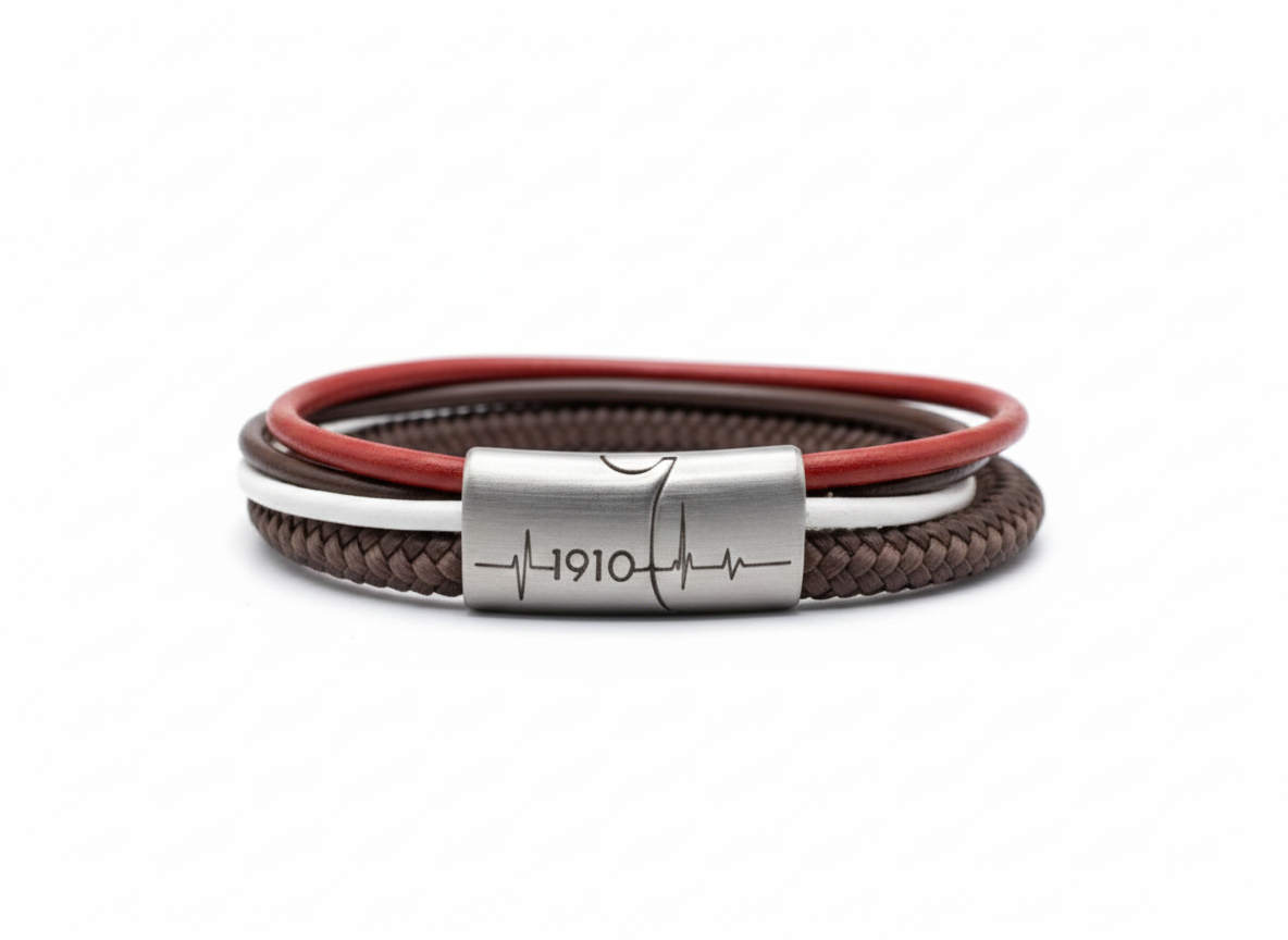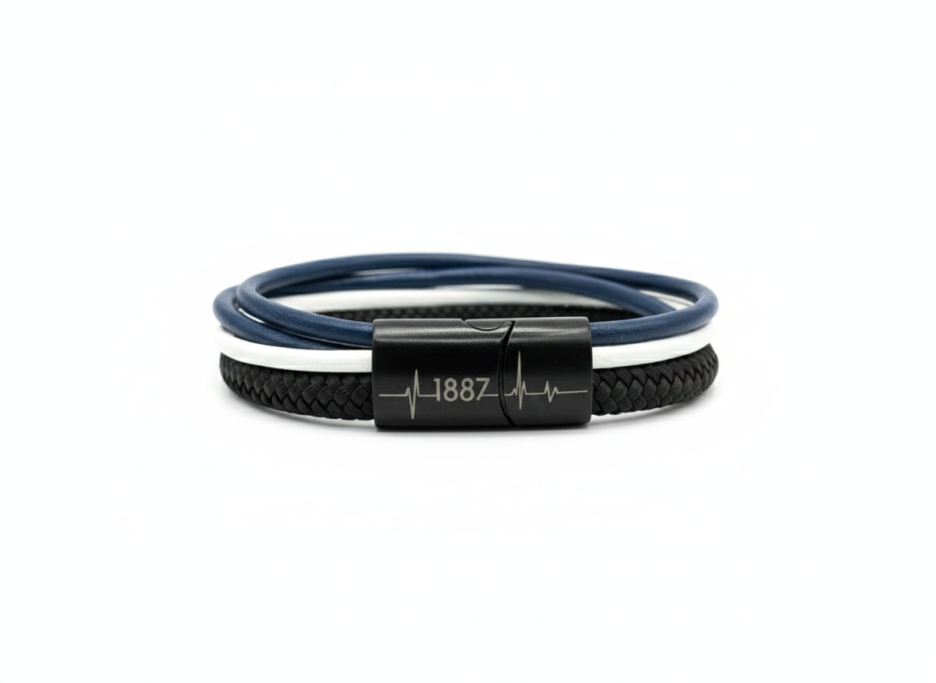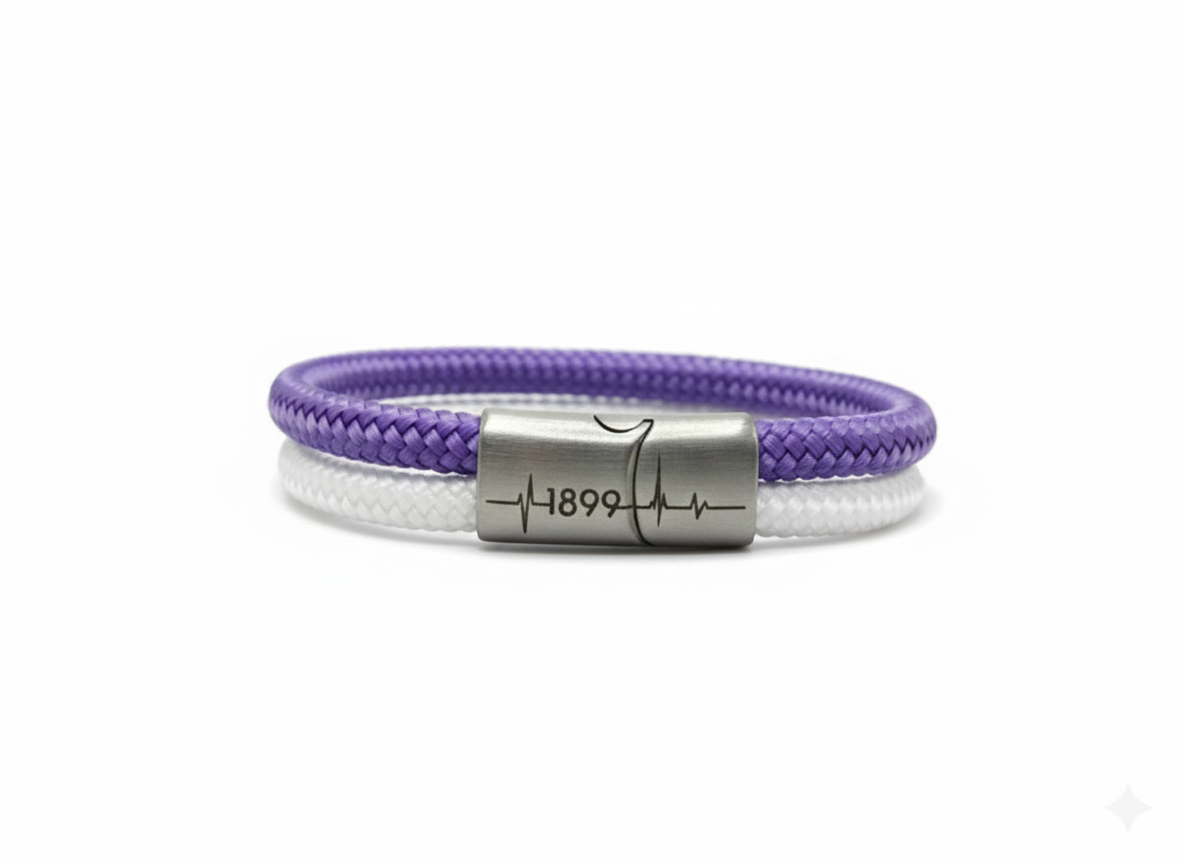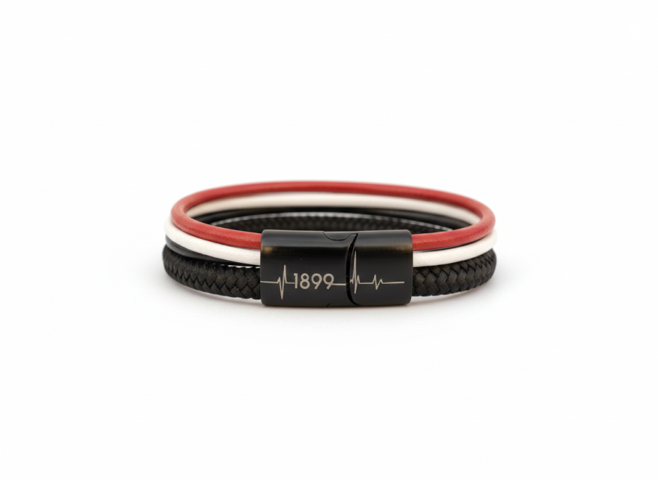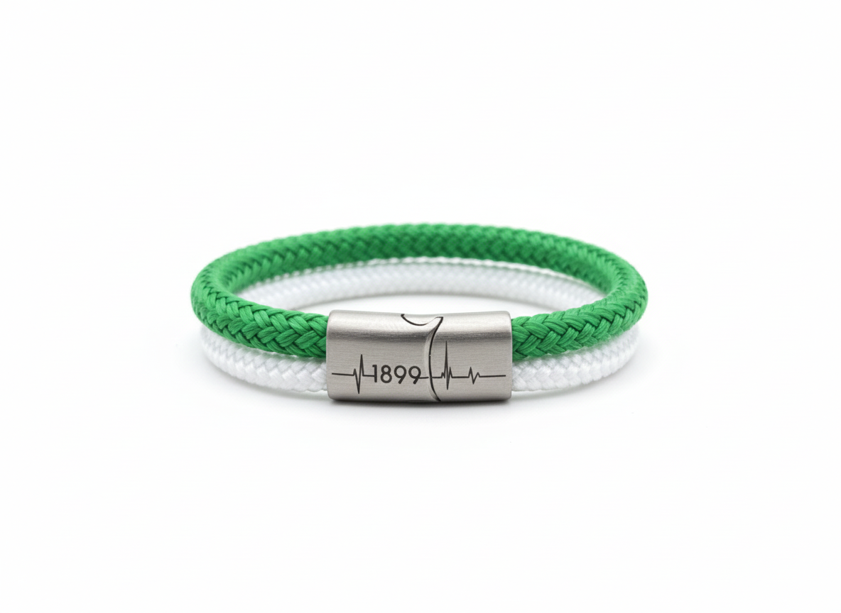 Unsere "Viererkette" Kollektion präsentiert sich als einzigartiges Accessoire für echte Fans. Jedes Armband besteht aus einem hochwertigen Segeltau-Seil, das für Stabilität und Langlebigkeit sorgt, sowie drei stilvollen Rundleder-Elementen, die dem Design einen eleganten Touch verleihen. Diese Kombination aus sportlichem und modischem Stil macht unsere Fanarmbänder zu einem perfekten Begleiter für jede Gelegenheit und Ausdruck der Verbundenheit mit deinem Lieblingsverein.