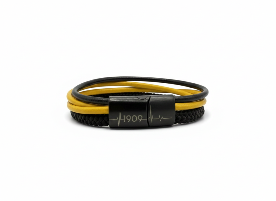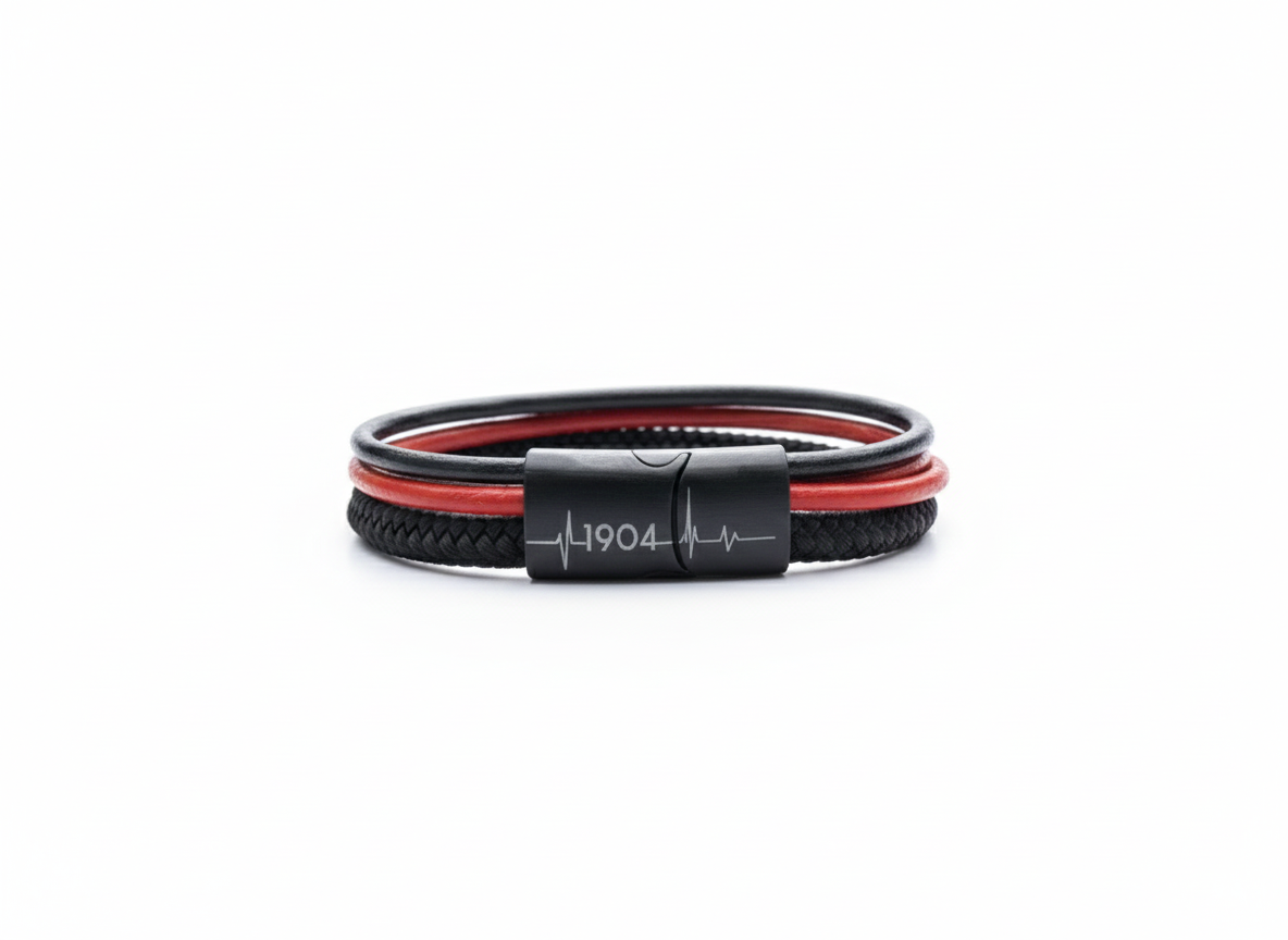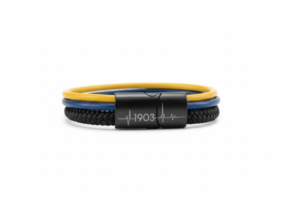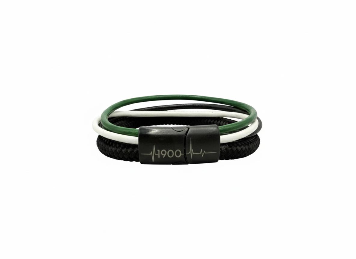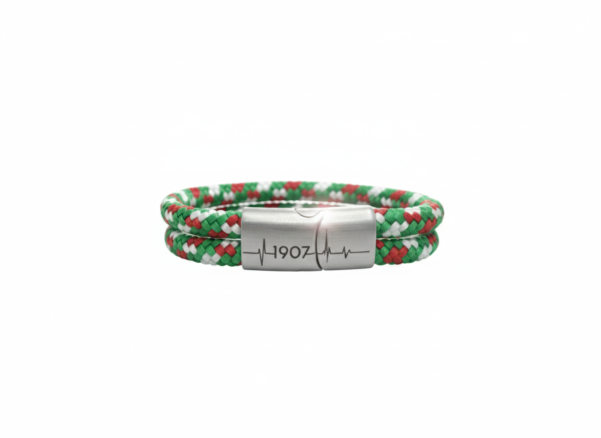 Unsere "Viererkette" Kollektion präsentiert sich als einzigartiges Accessoire für echte Fans. Jedes Armband besteht aus einem hochwertigen Segeltau-Seil, das für Stabilität und Langlebigkeit sorgt, sowie drei stilvollen Rundleder-Elementen, die dem Design einen eleganten Touch verleihen. Diese Kombination aus sportlichem und modischem Stil macht unsere Fanarmbänder zu einem perfekten Begleiter für jede Gelegenheit und Ausdruck der Verbundenheit mit deinem Lieblingsverein.